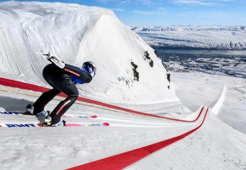 运动员首先要从一个长长的斜坡上滑下来,达到惊人的速度。